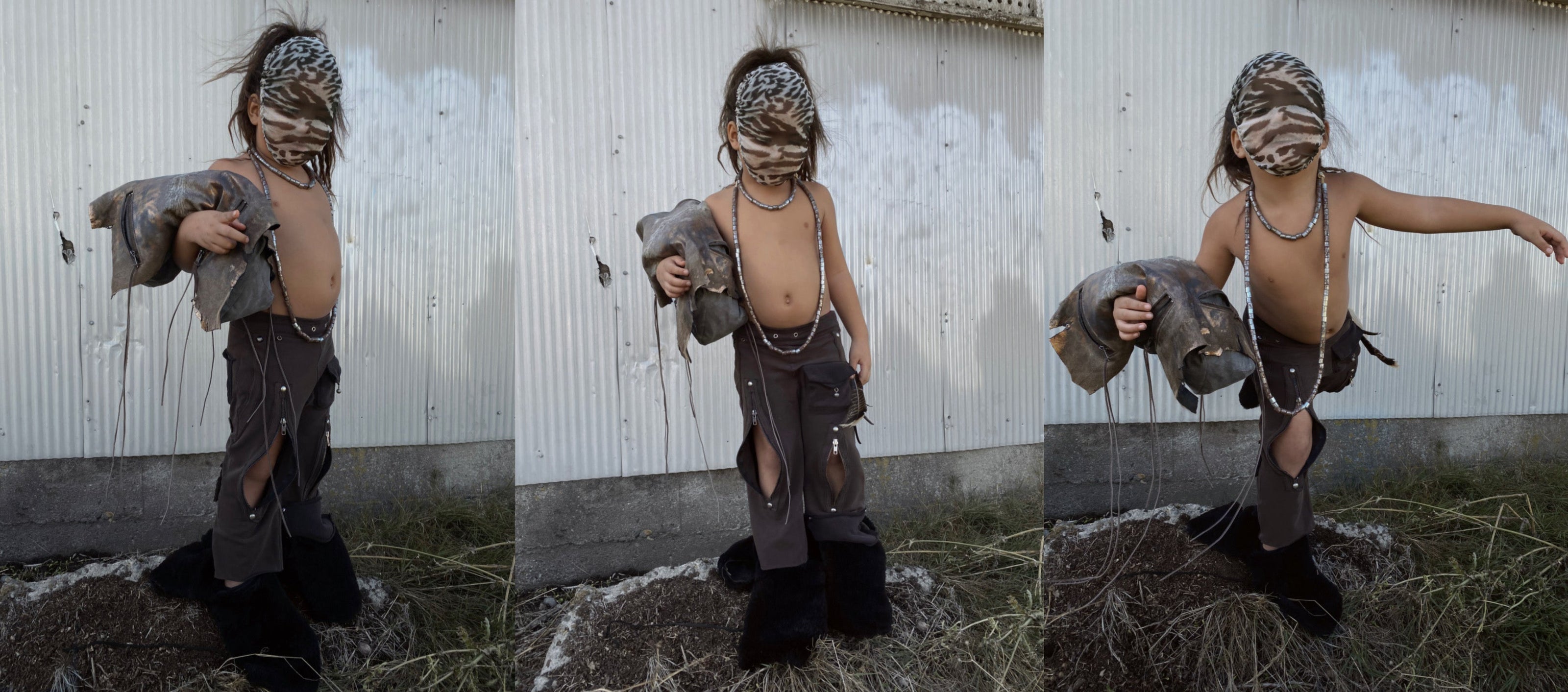 MULTI-ZIP SUEDE AND LAMB LEATHER BAG