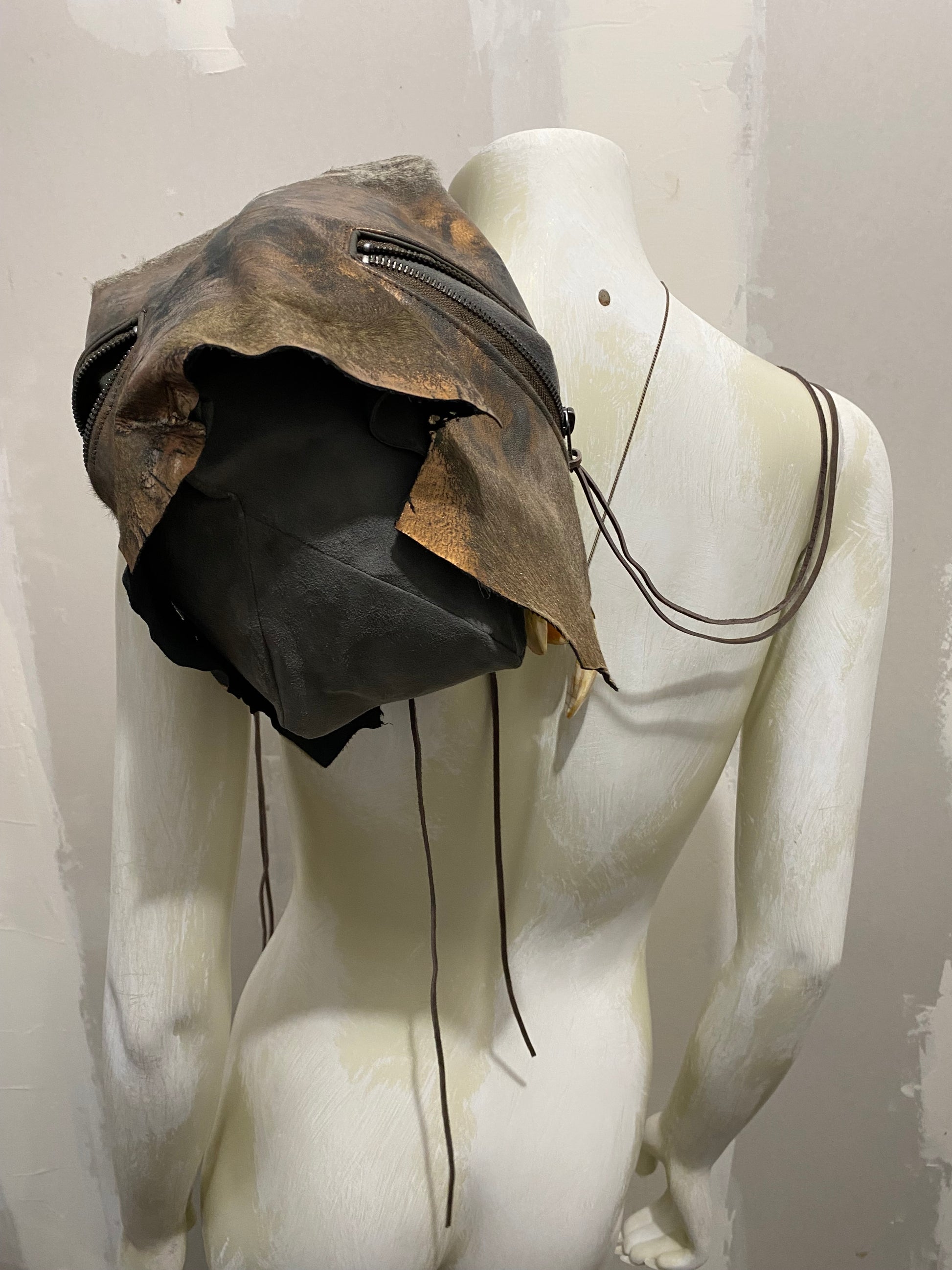 Slouchy grey suede and raw edged short hair printed leather hide